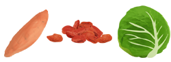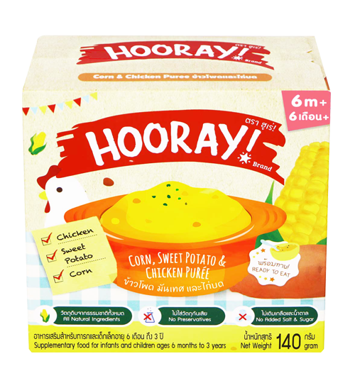 ข้าวโพด มันเทศ และไก่บด